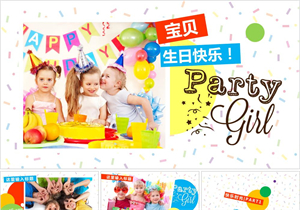 小朋友多彩童趣生日派对ppt模板