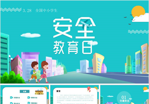 小清新风格全国中小学生安全教育ppt模板