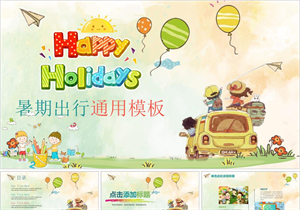 快乐暑假出行儿童卡通通用动态PPT模板