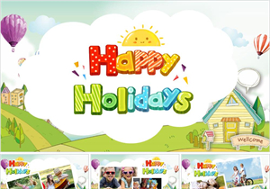 快乐暑假出行儿童卡通通用动态PPT模板 (2)