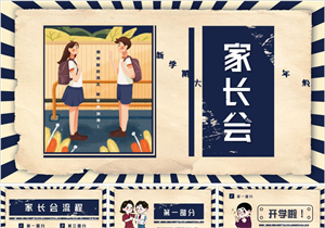 怀旧经典蓝开学季家长会PPT模板