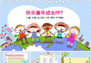 快乐童年成长幼儿园档案册儿童相册PPT模板