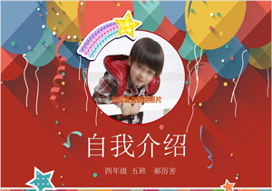 扁平化儿童自我介绍中小学生班干部大队委竞选PPT模板