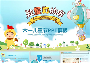放飞梦想儿童卡通六一儿童节动态PPT模板