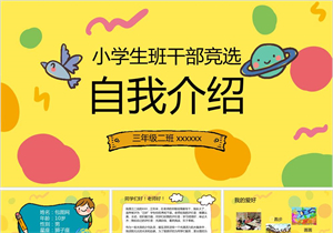 最新黄色卡通幼儿园小学生竞选班干部自我介绍