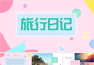 杂志风甜美清新马卡龙色旅行相册PPT模版_