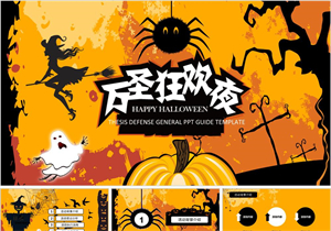 橙色万圣狂欢夜卡通文艺PPT模板