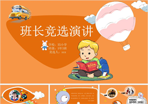 橙色小学生竞选班干部PPT模板