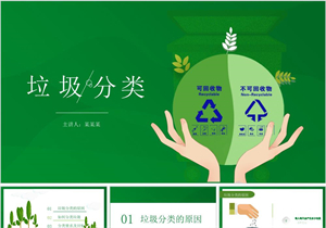 绿色环保简约小清新垃圾分类宣传PPT模板