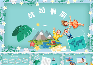 缤纷暑假暑期旅游纪念相册动态PPT模板