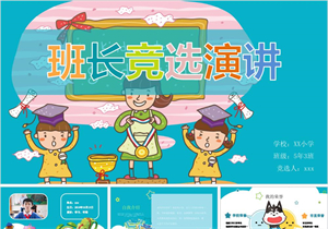 蓝色卡通小学生班干部竞选PPT动态模板