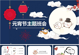 蓝色元宵节主题班会模板