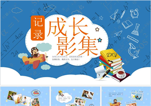 蓝色卡通儿童成长影集相册PPT模板