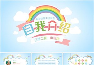 蓝色卡通小学生自我介绍班干竞选PPT模板