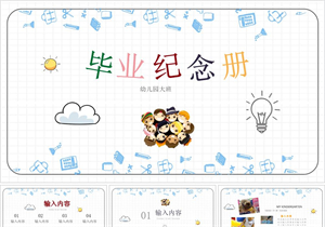 蓝色卡通幼儿园毕业纪念相册PPT模板