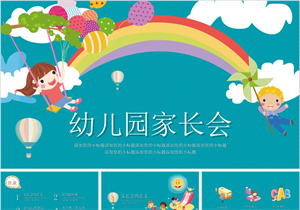 蓝色卡通幼儿教育培训家长会PPT模板