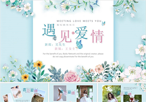 遇见爱情小清新婚礼相册PPT模板