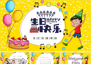 邀请函可爱卡通童趣生日会PPT模板