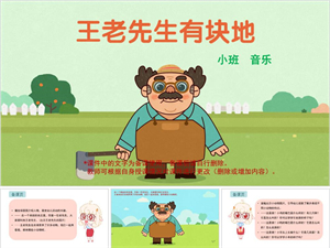 小班音乐《王老先生有块地》含有声动态PPT+歌曲及伴奏+动画+纸具打印+教案