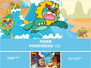 中班语言《年的故事》绘本PPT课件+故事配音+鞭炮手工步骤图+教案等