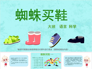 大班语言科学《蜘蛛买鞋》有声PPT+儿歌配音+教案