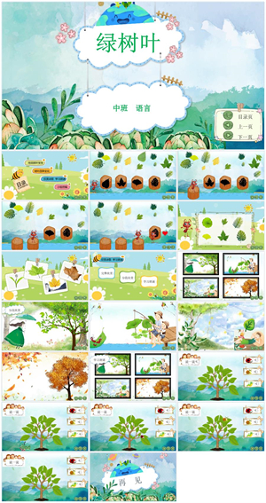 中班语言PPT课件《绿树叶》含音频