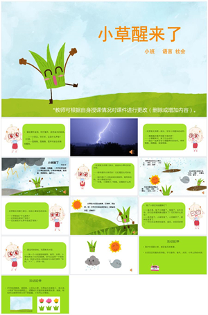 小班语言PPT课件《小草醒来了》含教案音频打印图