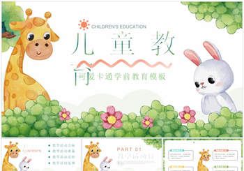 可爱卡通动物儿童教学通用PPT模板