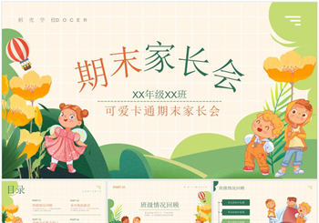 可爱卡通幼儿园期末家长会PPT模板
