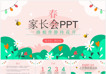 可爱卡通春季家长会PPT模板