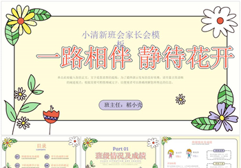 小清新花朵班会家长会PPT模板
