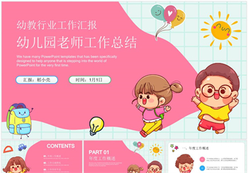 简约幼教行业幼儿园老师工作总结汇报PPT模板