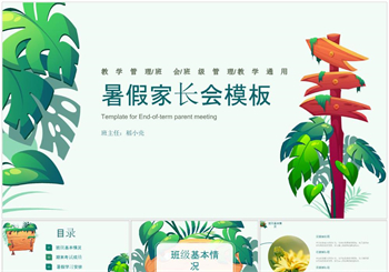 绿色暑假家长会PPT模板