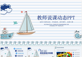 蓝白教师说课教育PPT模板
