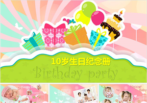 10岁生日纪念册卡通成长档案生日快乐电子相册PPT模板