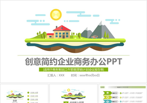 绿色平面创意卡通风景简洁商务PPT模板