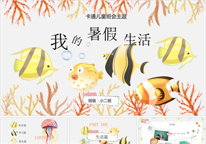 卡通彩色鱼儿我的暑假生活教育PPT模板