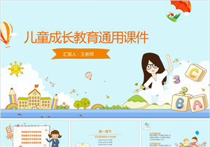 儿童幼儿园小学生卡通手绘老师通用课件PPT模板
