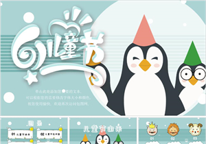 北欧卡通企鹅六一儿童节主题班会PPT模板