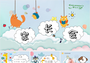 北欧简约卡通动物家长会PPT模板