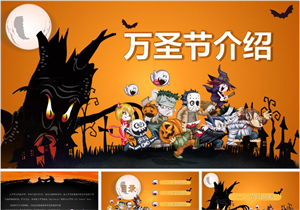 卡通万圣节主题节日介绍宣传PPT通用模板