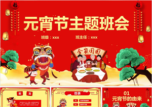 卡通儿童元宵主题班会PPT模板
