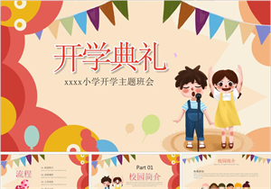 卡通儿童小学生开学典礼PPT模板