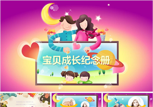 卡通儿童成长宝宝生日电子相册PPT模板