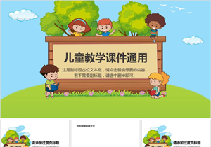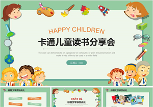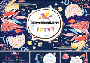 卡通动漫文艺手绘趣味动物儿童PPT模板