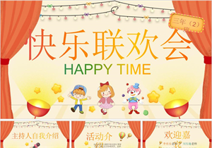 原创卡通联欢会PPT模板六一儿童节活动背景