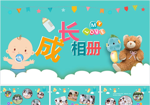 可爱卡通儿童快乐成长相册幼儿园PPT模板