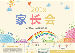 可爱卡通手绘小学幼儿园新学期家长会ppt