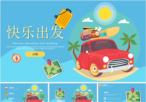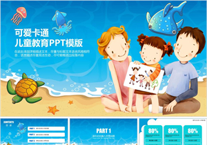 可爱卡通教育暑假海边海浪蓝色PPT模板